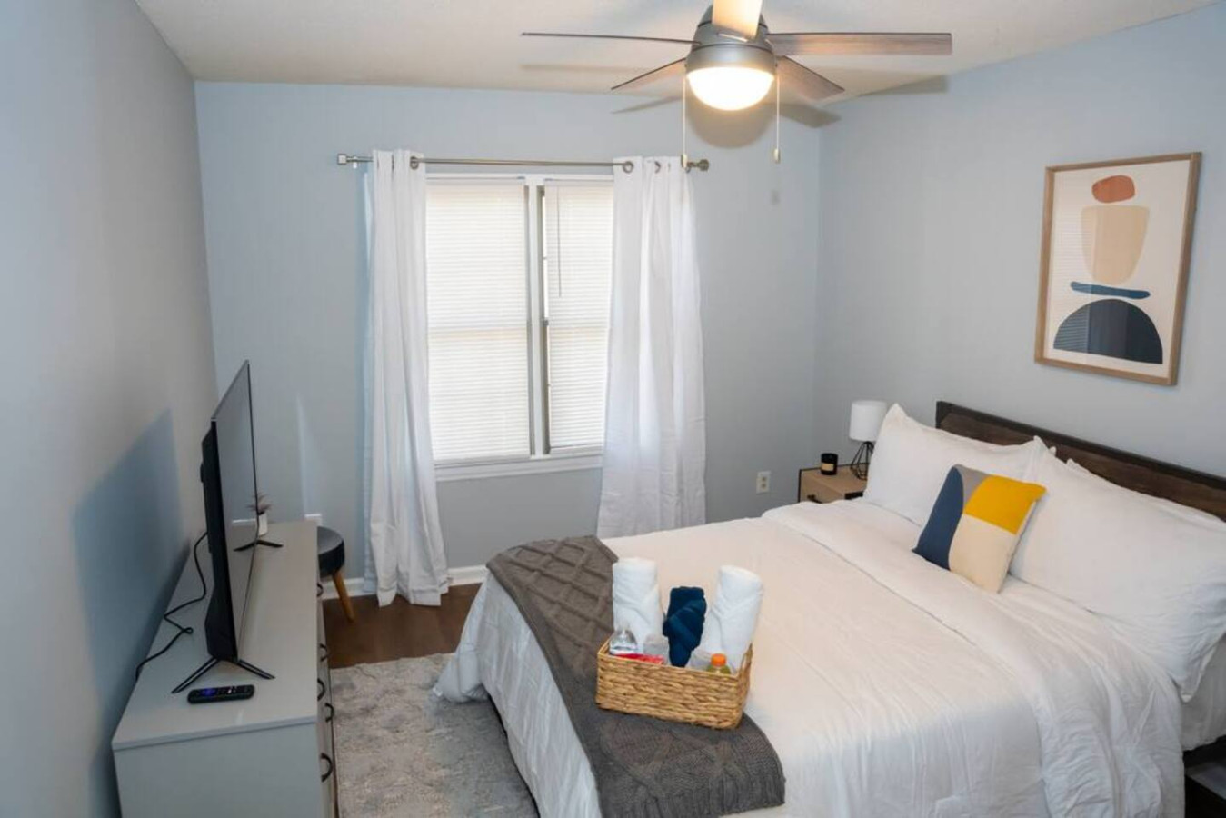 / nightWelcome to your perfect Winston-Salem retreat! This fully renovated 3-bedroom townhome accommodates up to 6 guests with modern amenities and stylish comfort. Located in a safe, peaceful community near Hanes Mall, you'll enjoy easy access to shopping, dining, and attractions like Downtown Winston-Salem, Old Salem, and Tanglewood Park. Ideal for families, friends, or business travelers, with local hosts ready to assist. Book your stay today! The townhome offers a thoughtfully designed layout. The first level boasts a modern kitchen, a functional office space, and an inviting open-concept area that combines the living room and dining space. This floor also includes a convenient laundry room and a guest-friendly half bathroom, all centered around an entertainment setup with a 52-inch TV. Moving to the second level, guests will find comfort in three cozy bedrooms, each outfitted with a queen-size bed and a 42-inch TV equipped with Roku for endless streaming options. Two well-appointed full bathrooms ensure convenience and privacy for all guests. This townhome’s blend of comfort, functionality, and modern amenities makes it an ideal choice for short-term renters seeking a home-away-from-home experience. During your stay, you’ll enjoy exclusive access to this unit, ensuring a private and comfortable experience. Additionally, the community features include a swimming pool, perfect for leisurely days under the sun, and is surrounded by scenic, mature trees that enhance the beauty and tranquility of the area. As locals to the area, our goal is to ensure your stay is uninterrupted and enjoyable. While we aim to respect your privacy, please know we’re just a text or message away, ready to offer assistance whenever needed. This neighborhood boasts a prime location close to numerous restaurants, situated in a safe area. Enjoy leisurely walks under the canopy of mature trees that line the neighborhood streets. The unit comes with two designated parking spots directly in front of it. Additionally, for any extra vehicles, several guest parking spaces are conveniently located just 50 yards away This property is personally managed by the owners, who are proud locals of Winston-Salem. We are dedicated to making your stay as enjoyable as possible and are readily available to assist with any needs that may arise during your visit.