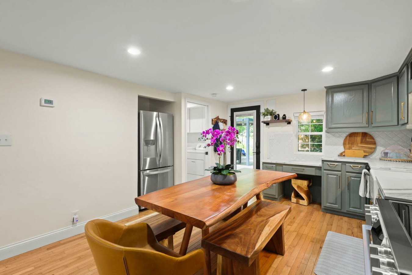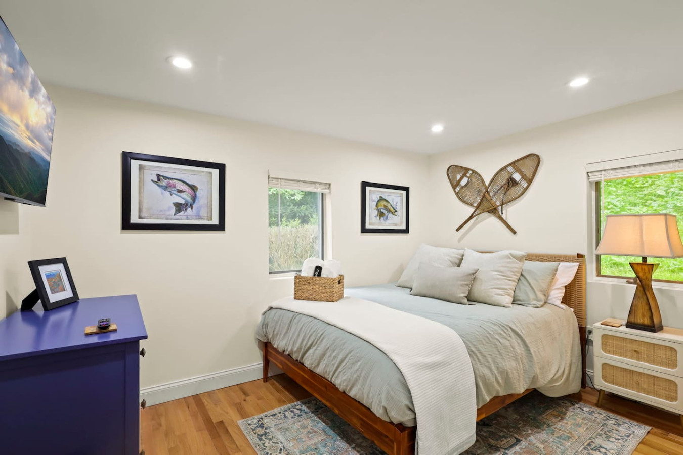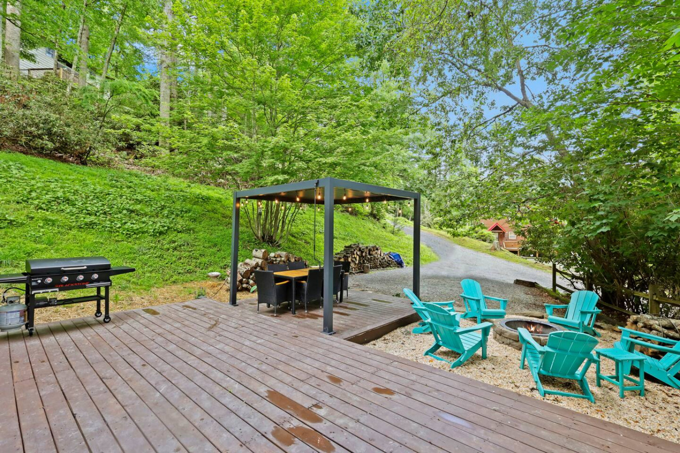 / nightBlue Ridge Peaceful Perch | 3BR/2BA Mountain Escape Near Boone & Blowing Rock Discover your mountain retreat at this stylish 3-bedroom, 2-bath getaway tucked among the trees in the heart of the Blue Ridge Mountains. Located just minutes from Boone, Blowing Rock, Banner Elk, Sugar Mountain, and Valle Crucis, this cozy yet modern cabin offers the perfect blend of comfort, convenience, and charm. Relax on the porch swing with your morning coffee, grill on the spacious deck, or wind down by the fire pit under the stars. Whether you’re here for hiking, skiing, fishing, or simply unwinding, Peaceful Perch is the perfect basecamp for your High Country adventures. Home Features Spacious 2-story layout with warm, modern mountain charm Upstairs: Master bedroom with king bed & 55" Smart TV Bedroom with queen/twin bunk bed & 46" Smart TV Cozy reading nook with forest views—perfect for coffee or wine Main Level: Bedroom with queen bed & 46" Smart TV Open-concept living room with fireplace & Smart TV Chef’s kitchen with farmhouse sink, stainless steel appliances, and custom dining table Full laundry area with washer/dryer and pantry Outdoor Living Large covered front porch with a comfy daybed swing Private balcony nestled in the trees Back deck with pergola, outdoor dining table, and gas grill Fire pit area with seating—ideal for s’mores and stargazing Prime Location 2 minutes to Valle Crucis Park and the Original Mast General Store 10 minutes to Boone and Appalachian State University 15 minutes to Banner Elk and Blowing Rock 20 minutes to Sugar Mountain Ski Resort and Grandfather Mountain Close to the Watauga River for trout fishing, picnics, and nature walks Nearby Activities Hiking & Nature: Grandfather Mountain, Moses Cone Park, Blue Ridge Parkway trails Skiing & Snowboarding: Appalachian Ski Mountain, Sugar Mountain, Beech Mountain Golf Courses: Sugar Mountain, Boone Golf Club, Linville, Diamond Creek, Elk River Club Wineries & Breweries: Banner Elk Winery, Grandfather Vineyard, Linville Falls Winery, Eagles Nest Winery, plus local craft breweries with live music Family Fun: Valle Crucis Park playgrounds, trout fishing, tubing, gem mining, and mountain zip lines Why Guests Love It From the cozy fireplace to the daybed swing on the porch, every detail is designed for comfort and relaxation. Families love the bunk room and spacious layout, while couples enjoy the private balcony and peaceful setting. After a day exploring Boone, Blowing Rock, or Sugar Mountain, gather around the fire pit for s’mores under the Carolina mountain sky.